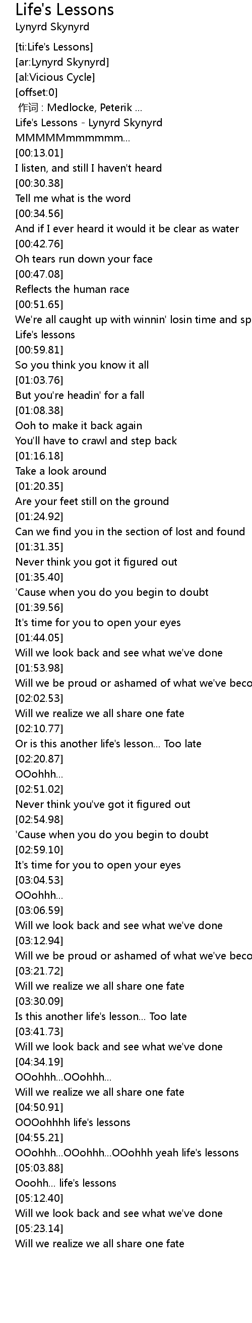 | [00:01.03] | Life's Lessons - Lynyrd Skynyrd |