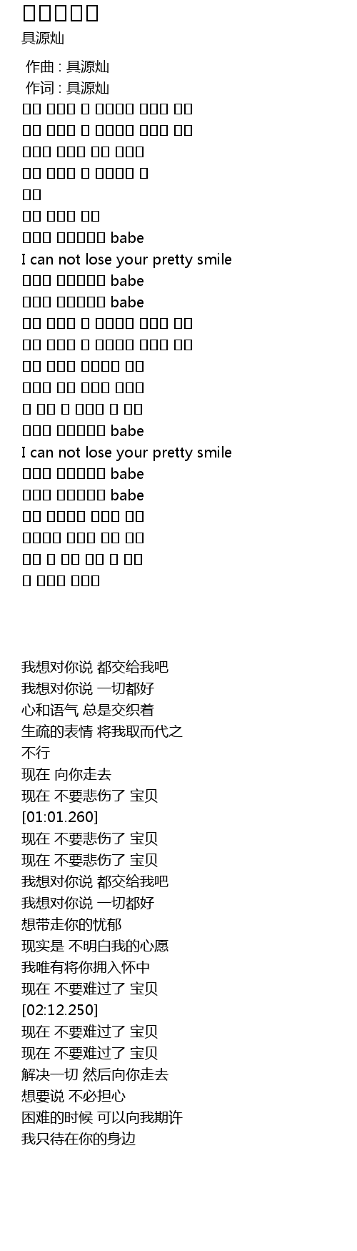 | [02:04.370] | 이제는 슬퍼하지마 babe |