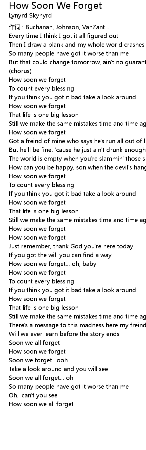 | Soon we forget.. ooh | |