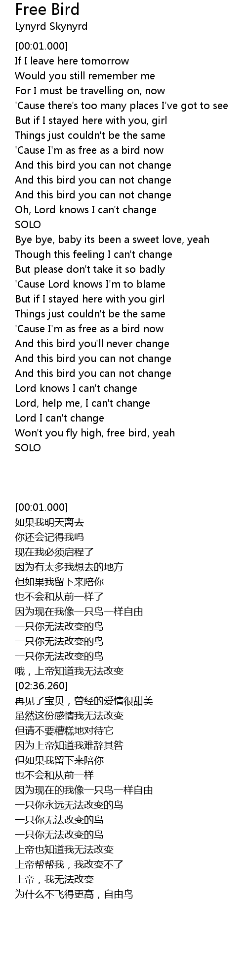 Won't you fly high, free bird, yeah |