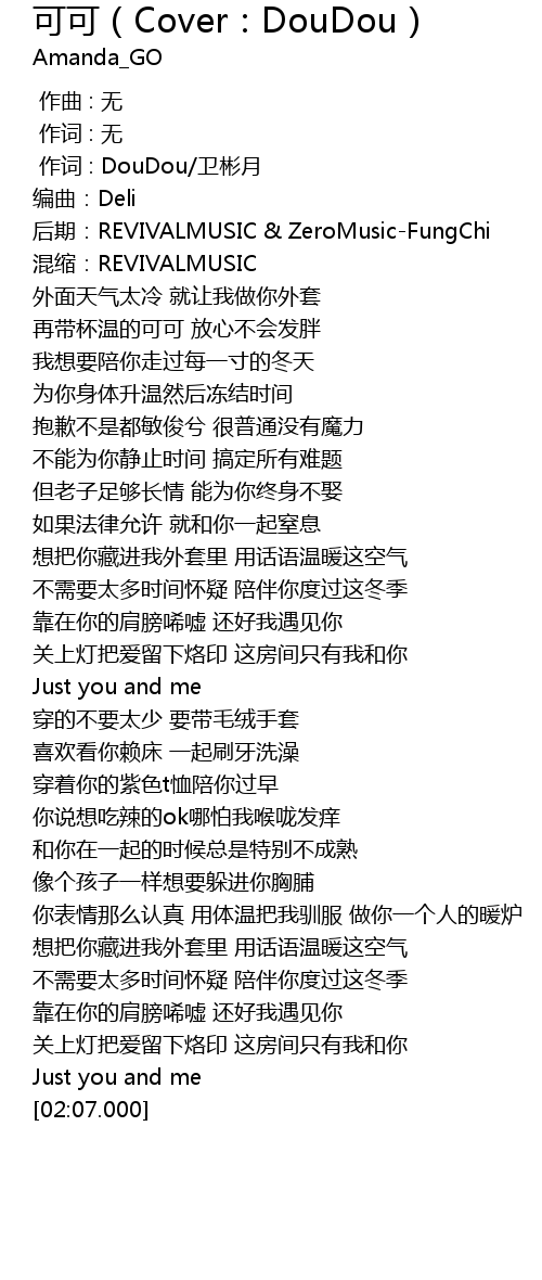 | [00:15.000] | hou qi: REVIVALMUSIC ZeroMusicFungChi |