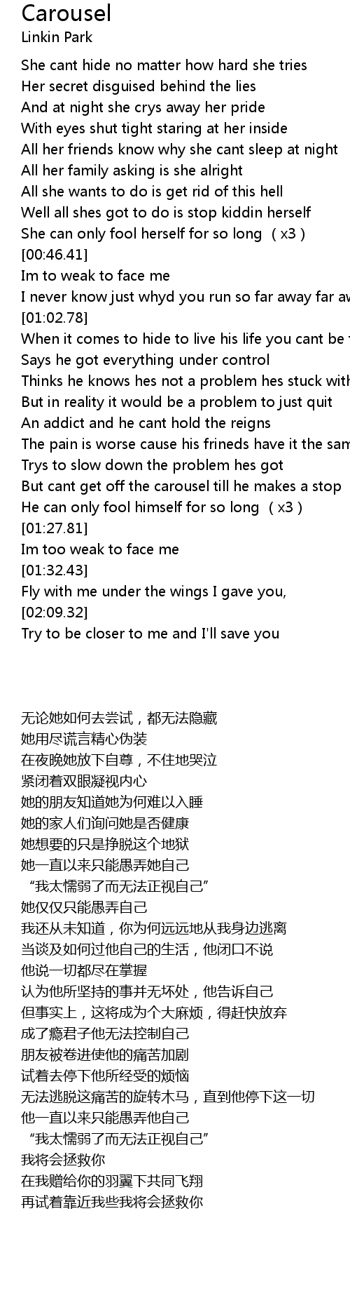 | [01:21.97] | But cant get off the carousel till he makes a stop |