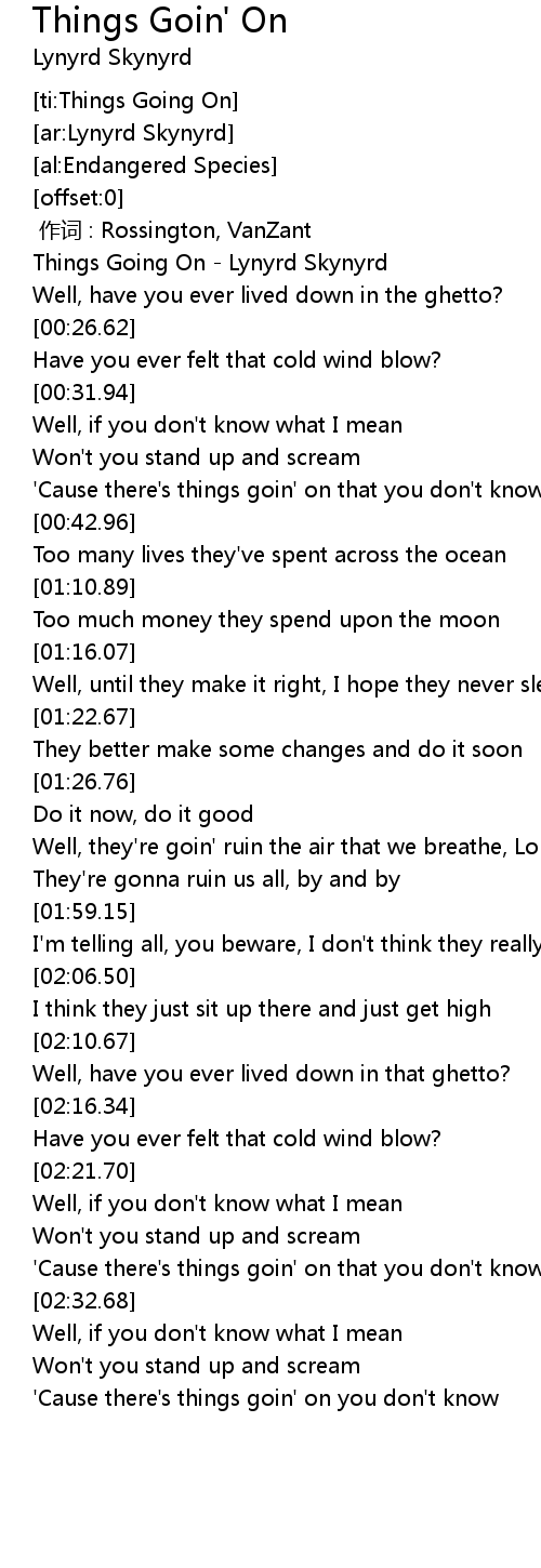 | [00:00.62] | Things Going On Lynyrd Skynyrd |