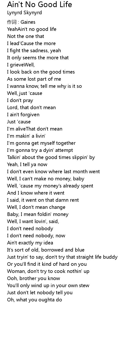 | YeahAin't no good life | |