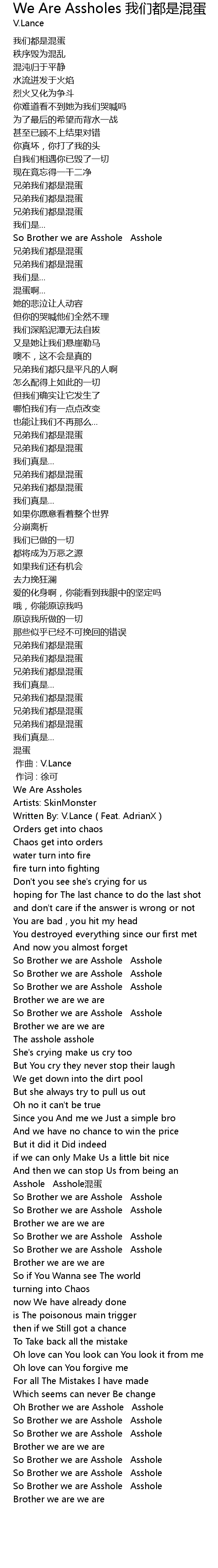 | Song | We Are Assholes 我们都是混蛋 |