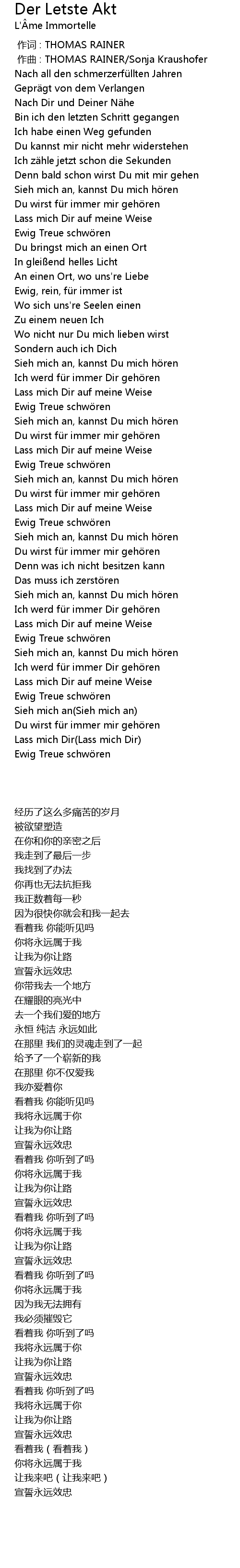 | [03:36.803] | Ich werd für immer Dir gehören |