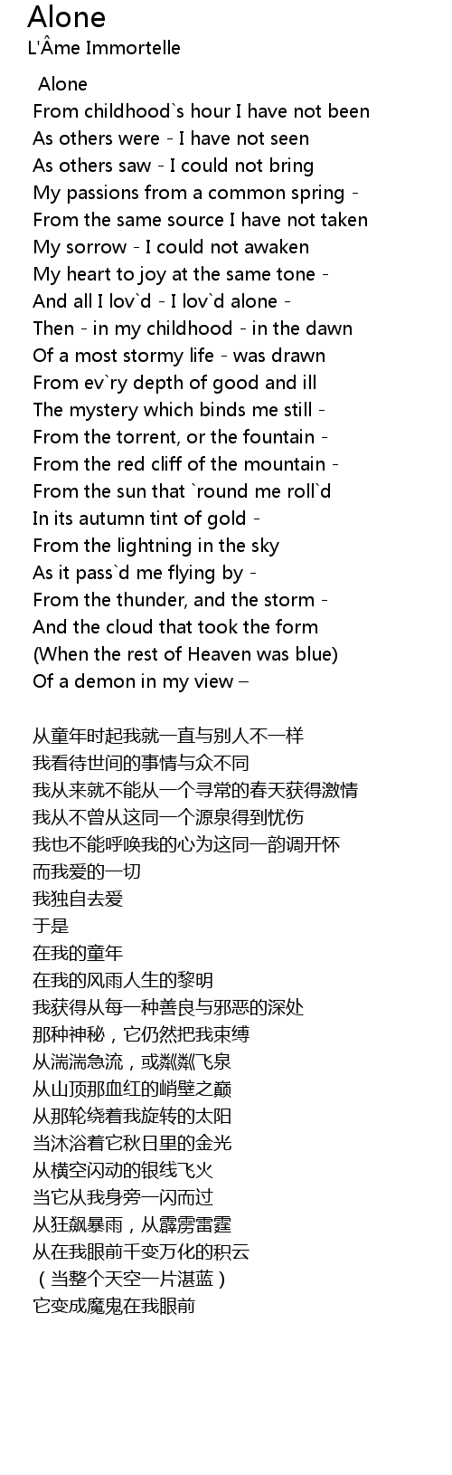 | And all I lov`d - I lov`d alone - | |