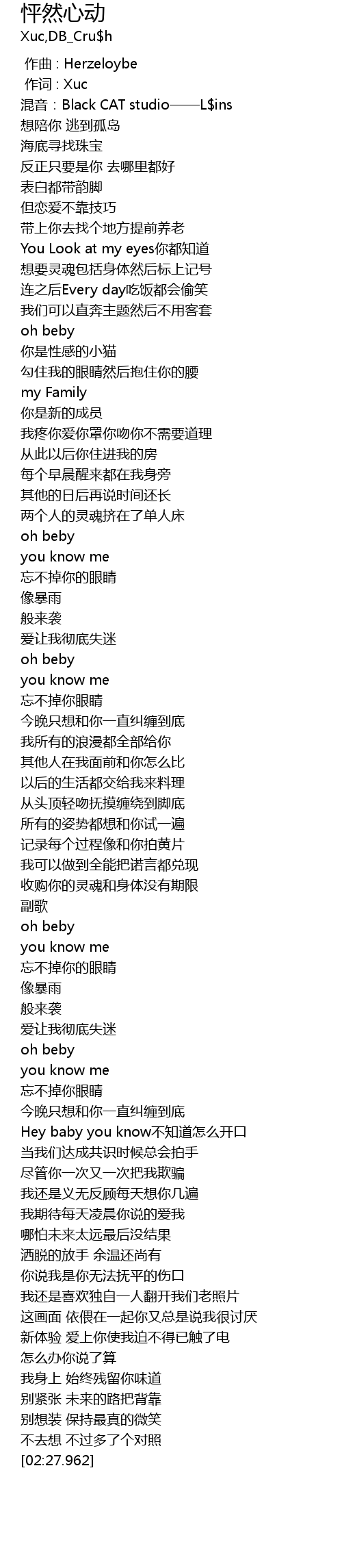 | [01:50.493] | Hey baby you know不知道怎么开口 |
