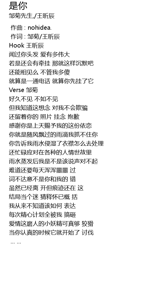 | [00:00.000] | zuò qǔ : nohidea. |