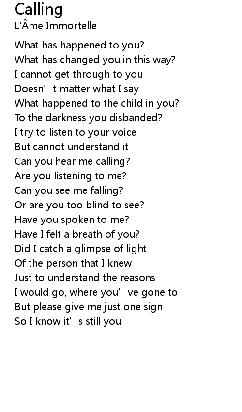 | Can you hear me calling? | |