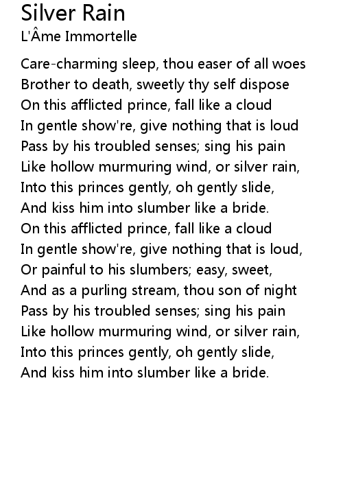 Like hollow murmuring wind, or silver rain, |