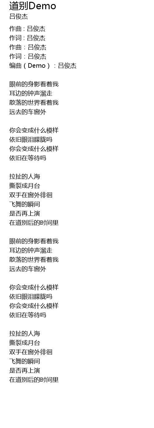 | [00:03] | 编曲(Demo):吕俊杰 |