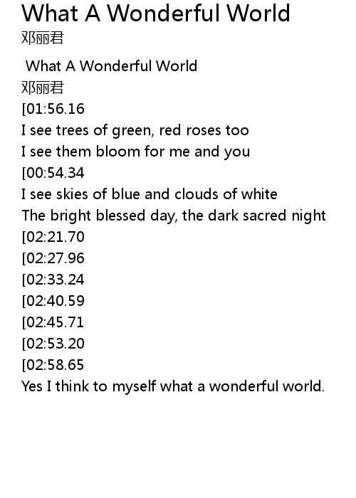 | [01:43.72][02:58.65] | And I think to myself what a wonderful world |