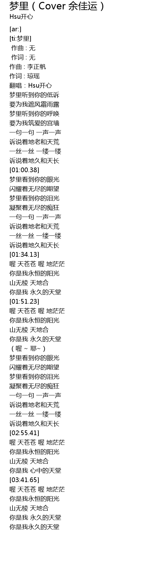 | [00:37.68] | meng li ting dao ni de hu huan |