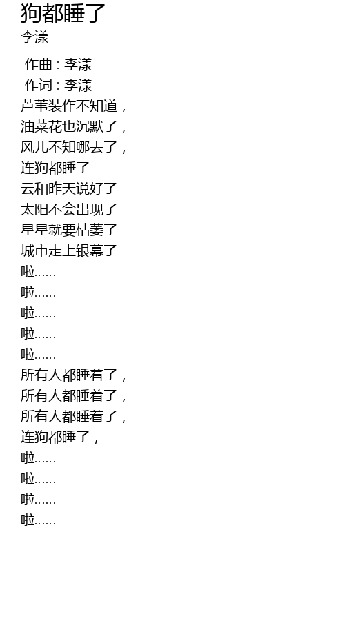 | [01:15.180] | lián gǒu dōu shuì le |