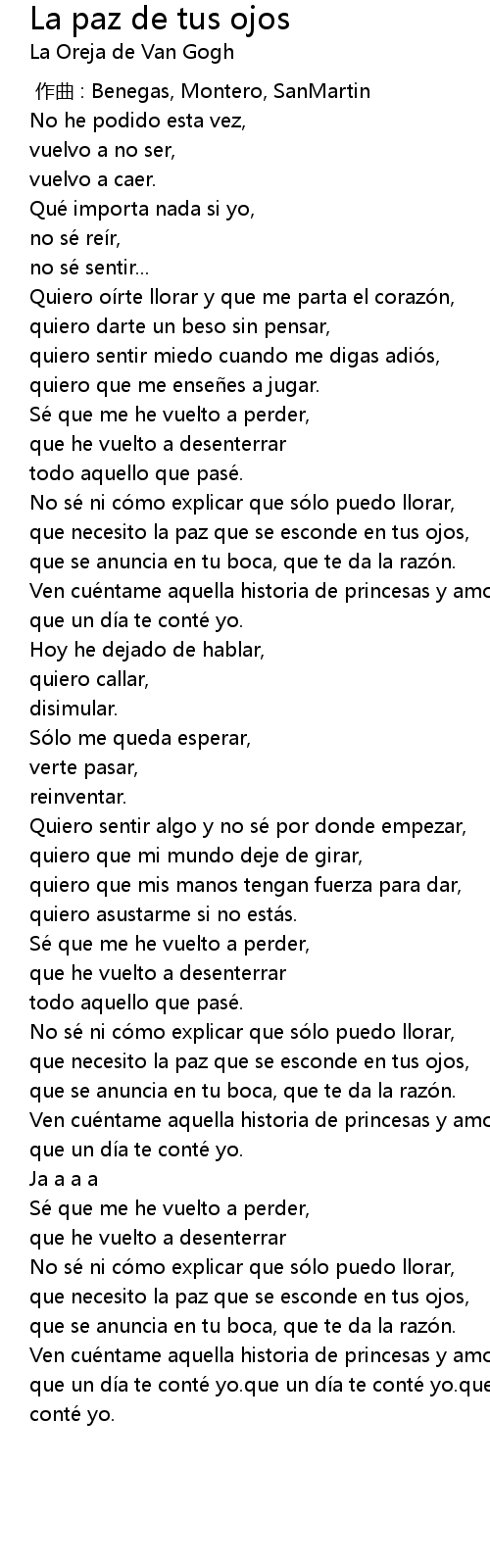 | [02:22.30] | que necesito la paz que se esconde en tus ojos, |