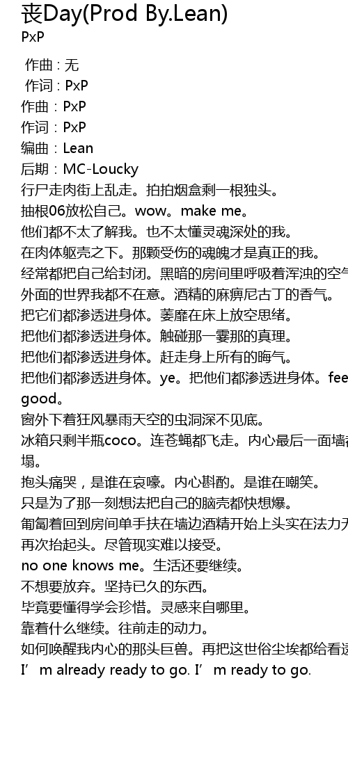| Song | 丧Day(Prod By.Lean) |