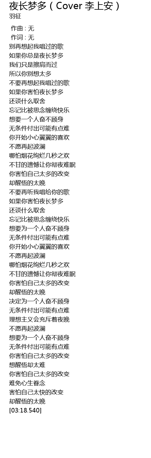 | [00:40.460] | rú guǒ nǐ hài pà yè cháng mèng duō |