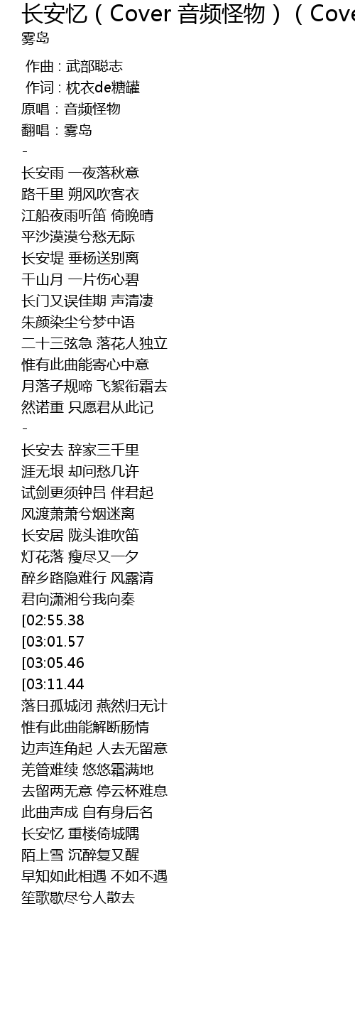 | [00:20.56] | 长安雨 一夜落秋意 |
