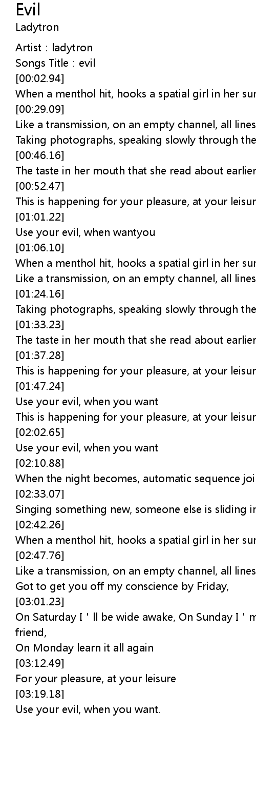 | [00:01.82] | Songs Title: evil |