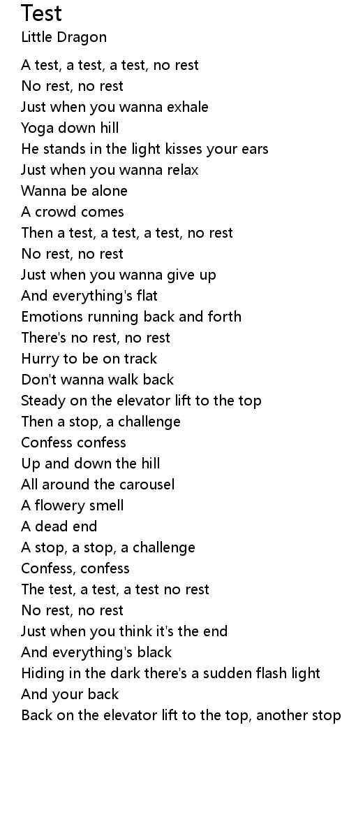 Then a test, a test, a test, no rest |