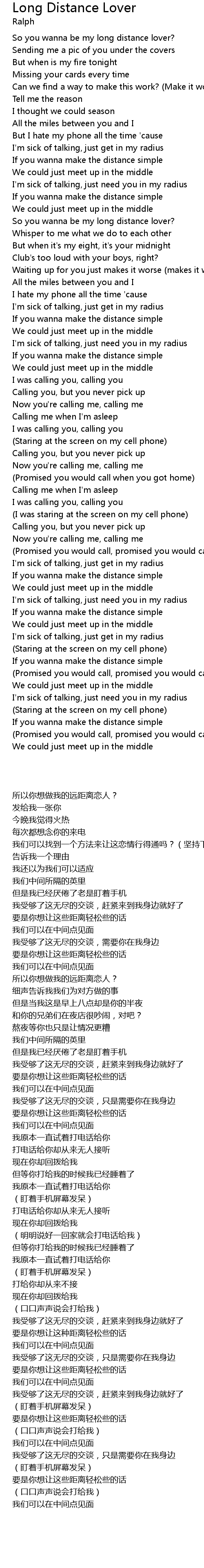 Song Long Distance Lover