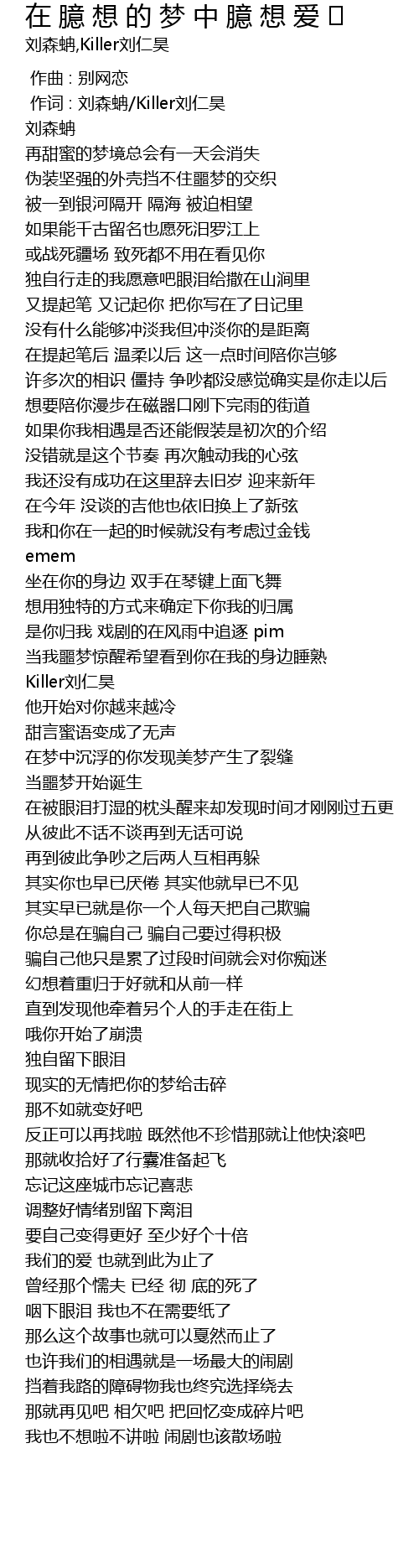 | [00:01.000] | zuò cí : liú sēn rán Killer liú rén hào |