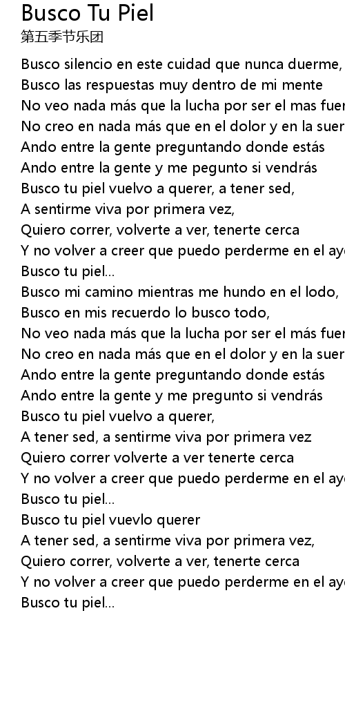 | Busco tu piel vuelvo a querer, a tener sed, | |
