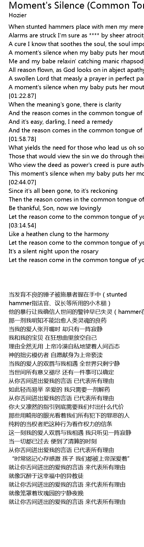 Then the reason comes in the common tongue of your lovin' me |