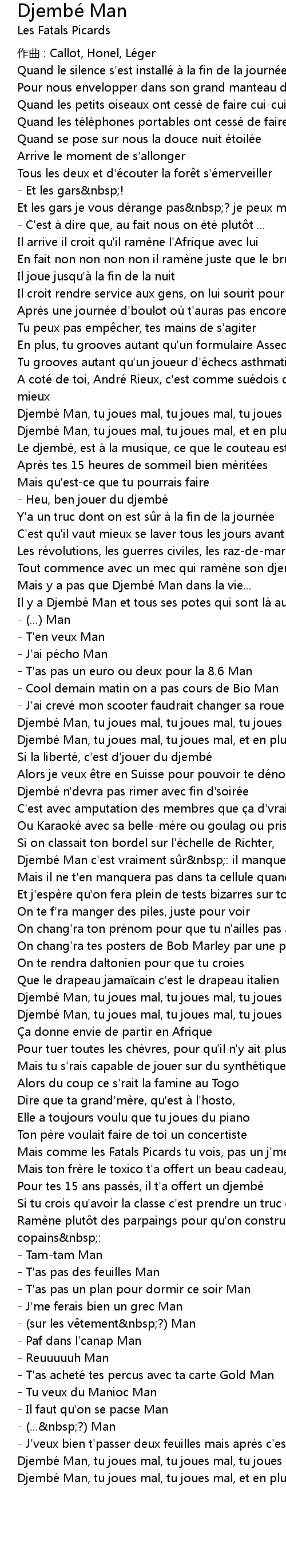 | Djembe Man, tu joues mal, tu joues mal, et en plus tu joues trop fort | |