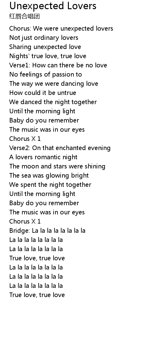 | Chorus: We were unexpected lovers | |