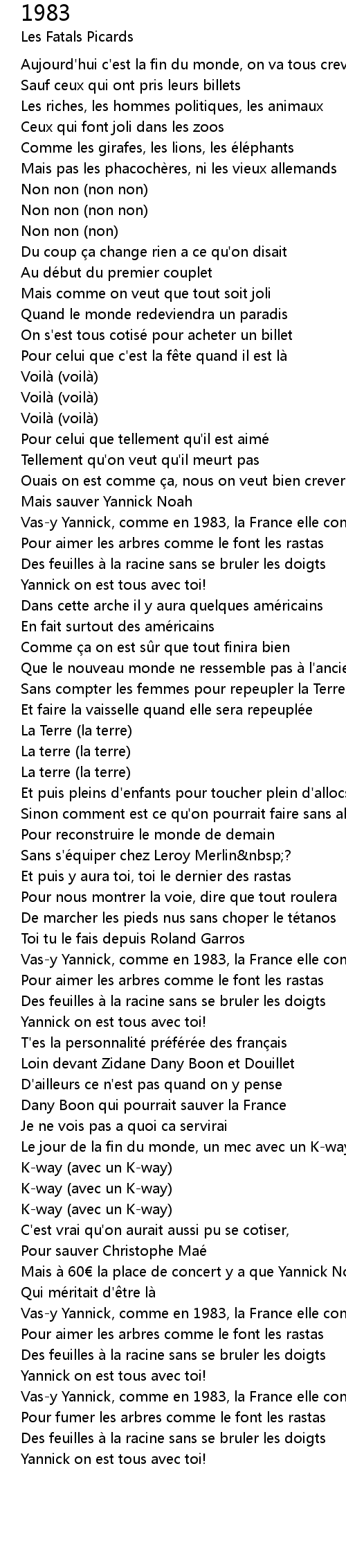 | Vasy Yannick, comme en 1983, la France elle compte sur toi | |