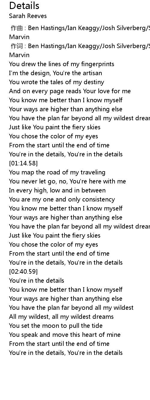 | [00:42.87] | You have the plan far beyond all my wildest dreams |