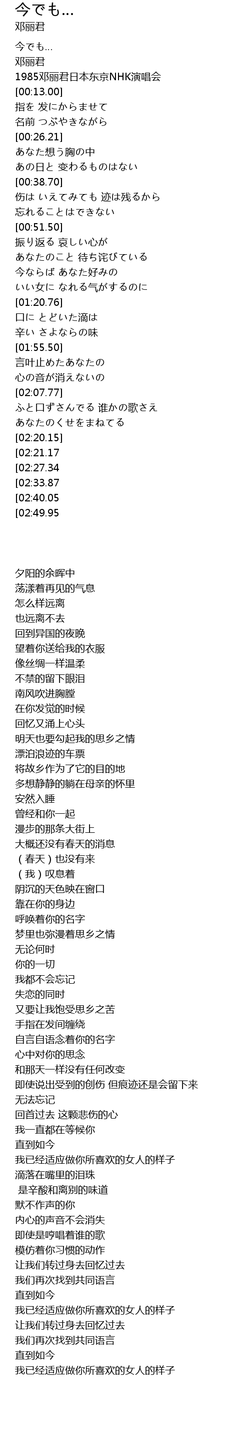 | [00:07.00] | 1985 dèng lì jūn rì běn dōng jīng NHK yǎn chàng huì |