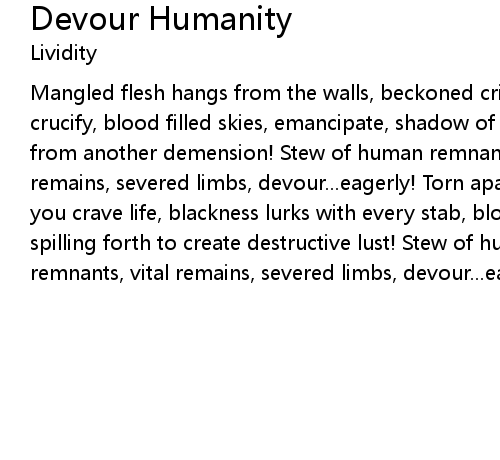 | Song | Devour Humanity |