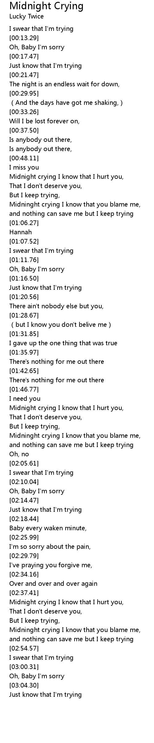 | [00:50.73] | Midnight crying I know that I hurt you, |