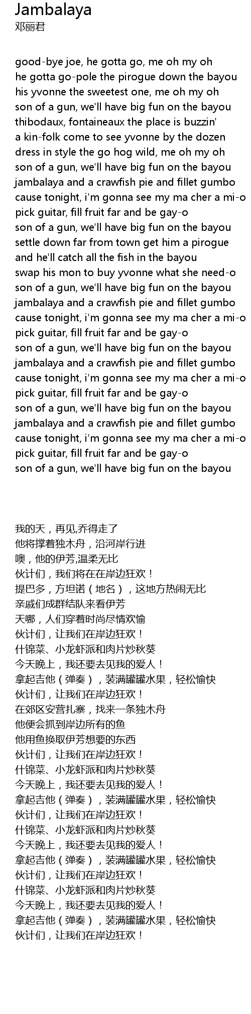 | [01:52.500] | son of a gun, we'll have big fun on the bayou |