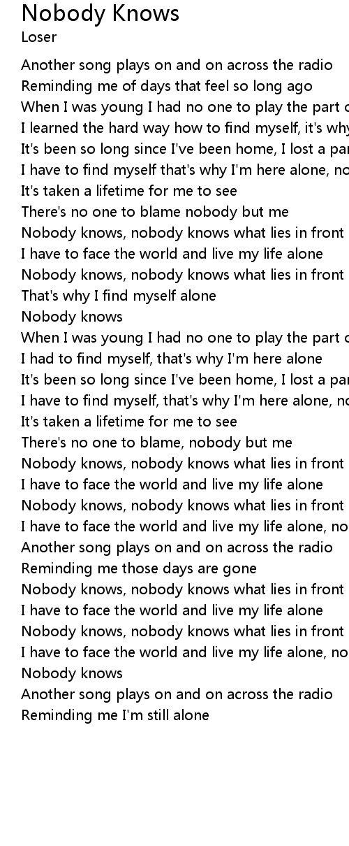 Nobody knows, nobody knows what lies in front of me |