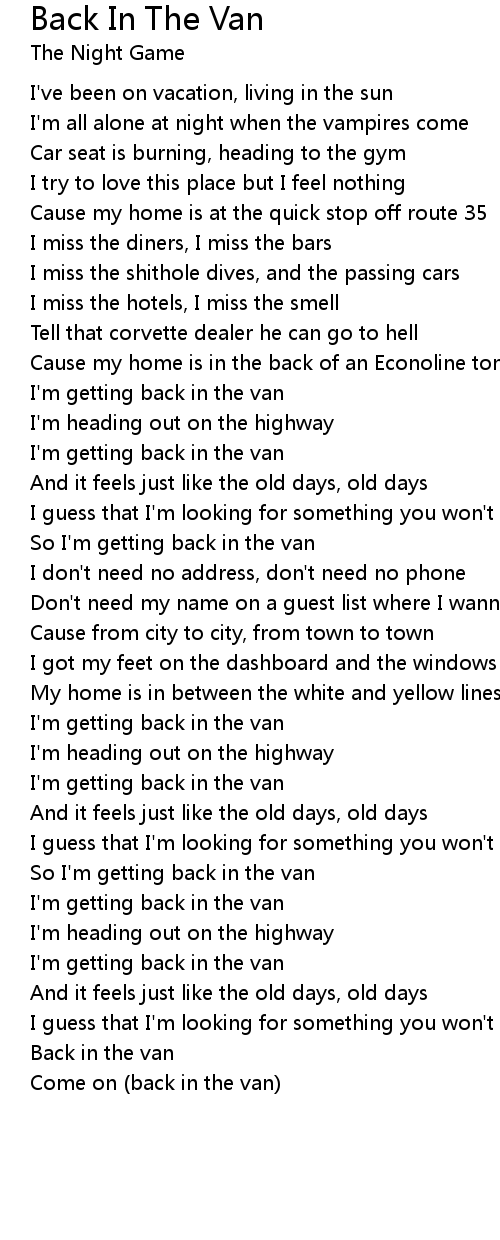 Back In The Van Lyrics