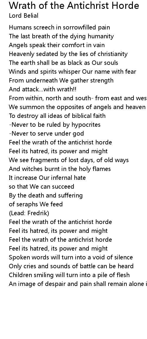Wrath of the Antichrist Horde Lyrics