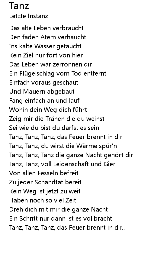 | Tanz, Tanz, Tanz, das Feuer brennt in dir | |