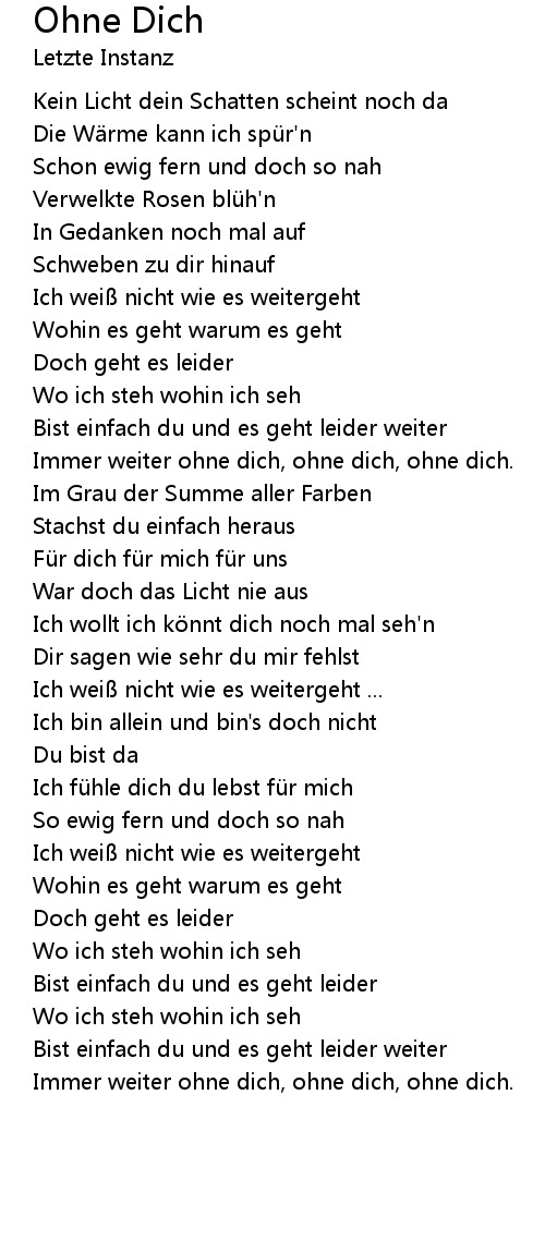 | Immer weiter ohne dich, ohne dich, ohne dich. | |