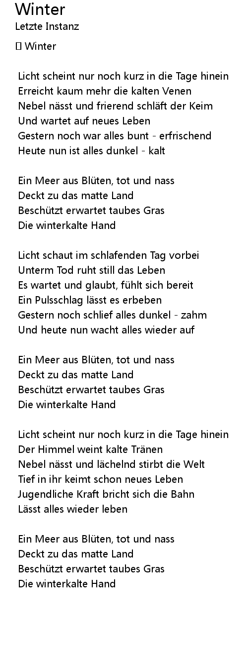 | Der Himmel weint kalte Tränen | |