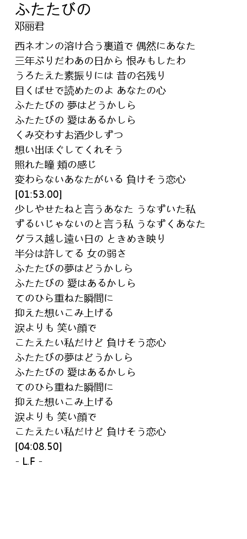 | [02:54.00] | ふたたびの 愛はあるかしら |