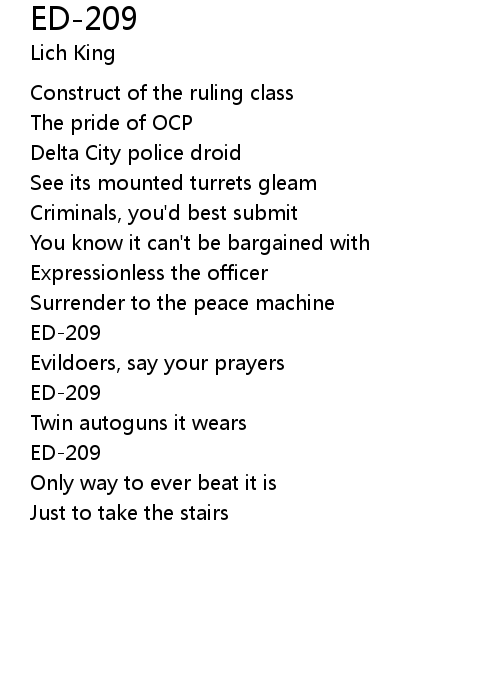 | Song | ED-209 |