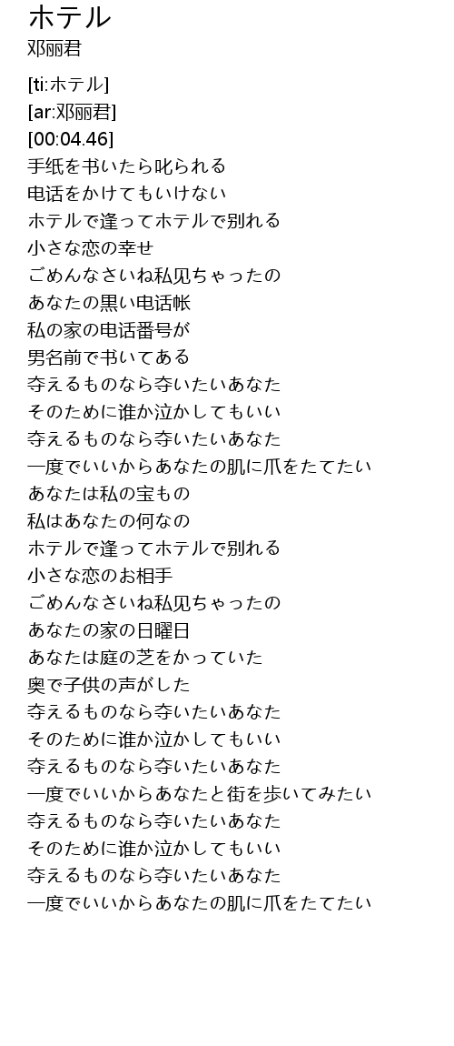 | [00:39.15] | ホテルで逢ってホテルで别れる |