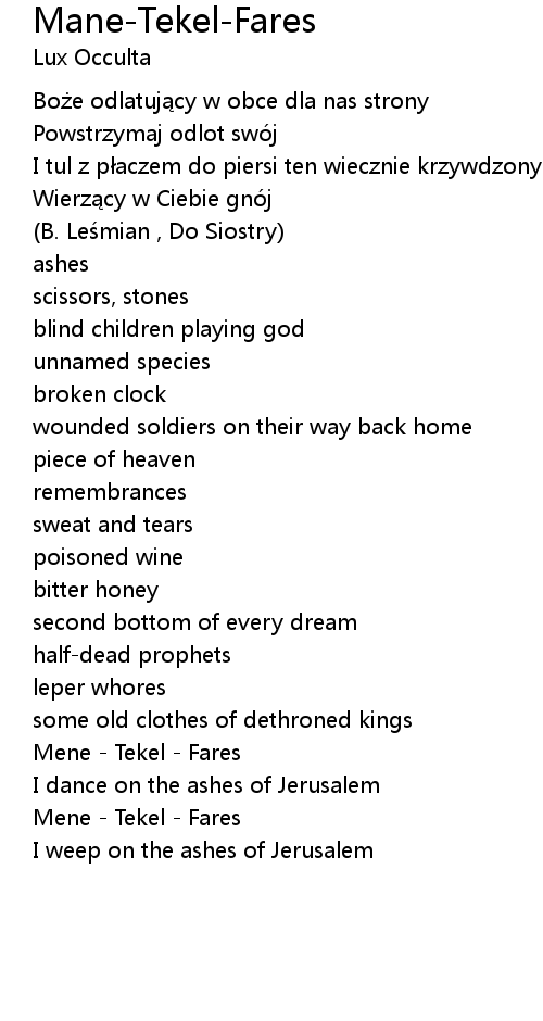 | Mene - Tekel - Fares | |