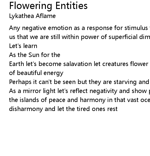 Earth let's become salavation let creatures flower and shine under the touches of beautiful energy