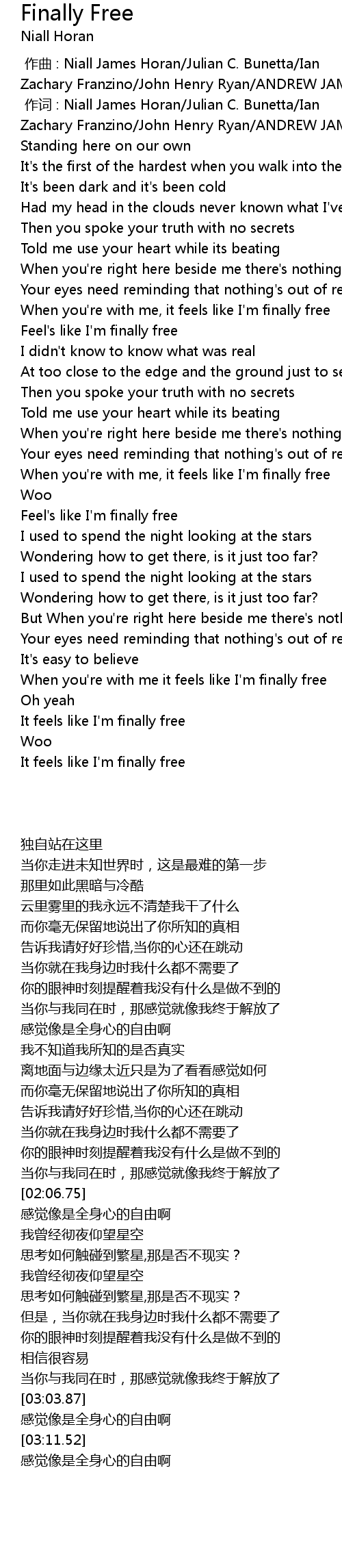 | [03:14.03] | It feels like I' m finally free |