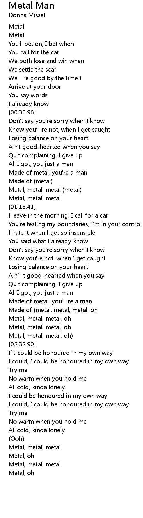 | [01:04.36] | Metal, metal, metal (metal) |
